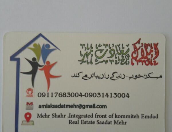 نام و نام خانوادگی: املاک سعادت مهر